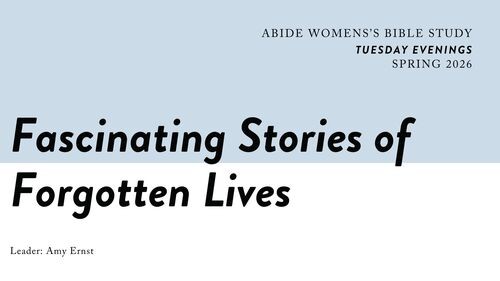 We will be meeting on Tuesday evenings in the Prayer Room to share what we learned about the characters, how the Lord spoke to us through the material, and how our understanding of Scripture changed. We will only cover 6 of the 13 characters in the book. There is no video to watch - this is an opportunity to connect through discussion and help each other grow in Christ.